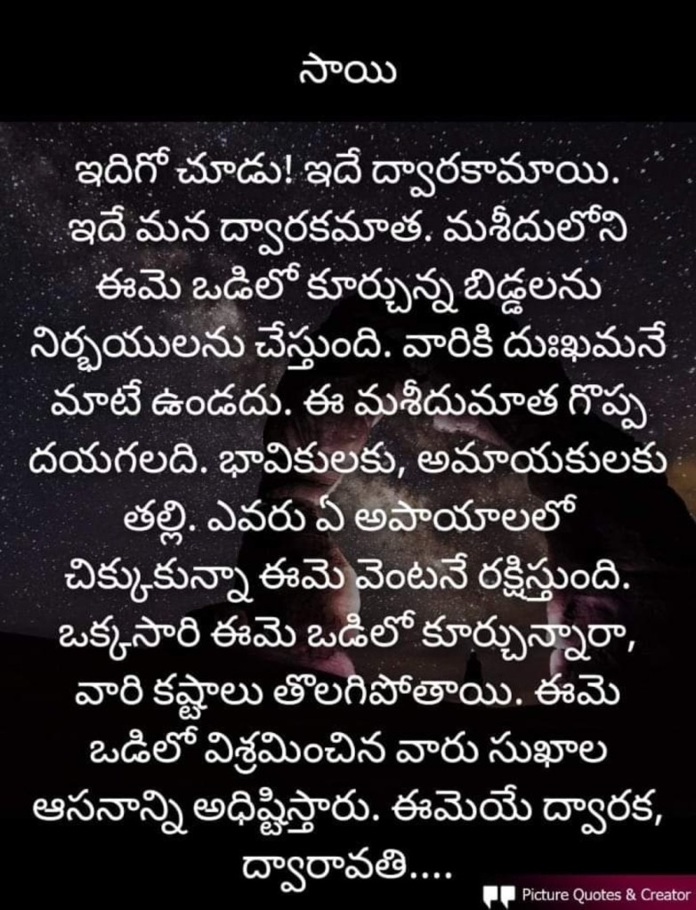 August 26, 2020August 26, 2020saisumaLeave a Comment on మహాత్ముల మాట బంగారు బాట మహాత్ముల మాట బంగారు బాట ఓం శ్రీ సాయినాధాయ నమః Share this:Tweet Share on WhatsApp (Opens in new window) WhatsApp Like Loading... Related